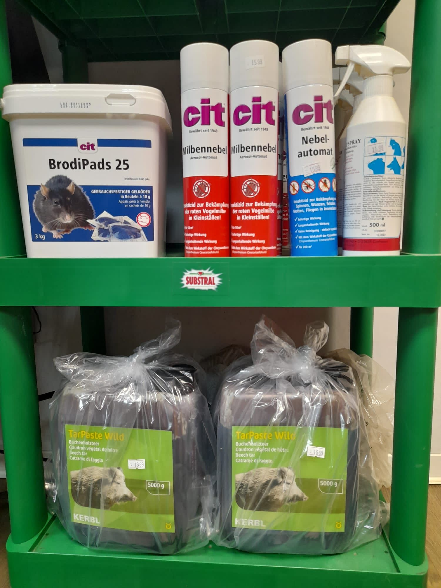 Wir führen ausgesuchte Mittel zur Bekämpfung von Schädlingen wie Milben, Ameisen, Ratten, Wühlmäuse als auch Mittel gegen Pflanzenschädlinge.